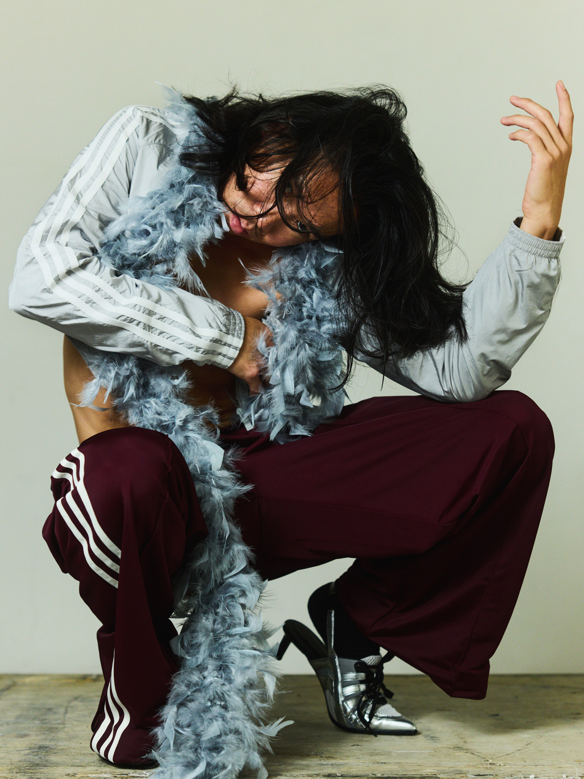 In ROSE LA ROSE the choreographer duo Rykena/Jüngst together with the performers Amelia Cavallo and Tian Rotteveel, the audio describer and performer Ursina Tossi and the musician Konstantin Bessonov dive into the obscure and erotic world of show culture and spectacle. They reveal their subversive potentials and pay homage to the in-between, the time before and after revelation, before and after seduction, before and after climax. They open up imaginative spaces in which clichéd notions of erotics are questioned and rewritten. Through the artistic use of audio description which translated visual content into language, the sighted and non-sighted performers in the piece intertwine visual and auditive spaces of perception. In a parallel analogue-digital working process due to Covid-19 between Amelia Cavallo in London and the rest of the team in Munich and Hamburg, they interrogate the (un)visible through the (un)spoken. The visual and auditive surfaces – combined by the voices and movement of the performers – create a structure of interwoven narratives and interpretations of hybrid eroticism.