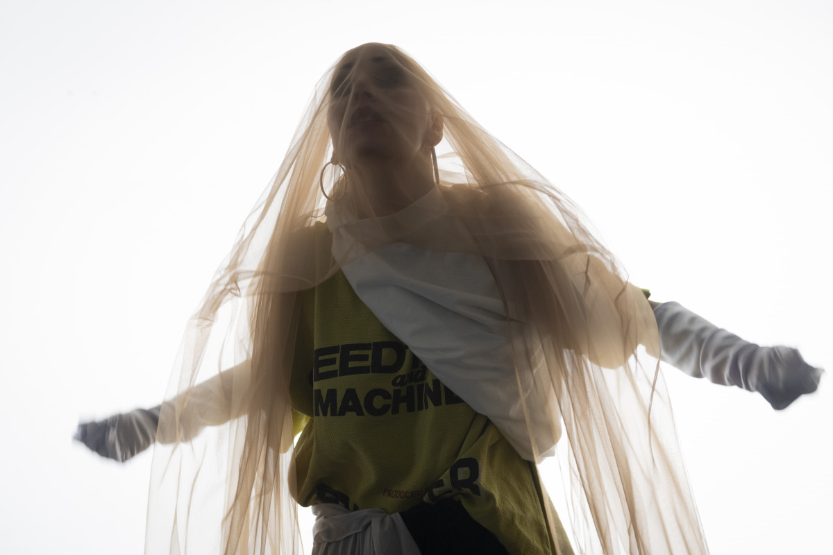 Based on the mythological figure of the siren, ARIE/ELLE examines the imaginary, physical and communicative dimensions and relationships of body and voice: hybrid sound-bodies and paradoxical creatures, sounds that come out of the body, emerging and dying away again – constantly telling new stories in the process. The voice grows out of the body, reaching beyond and thus redefining it: an image remains, only to vanish again.